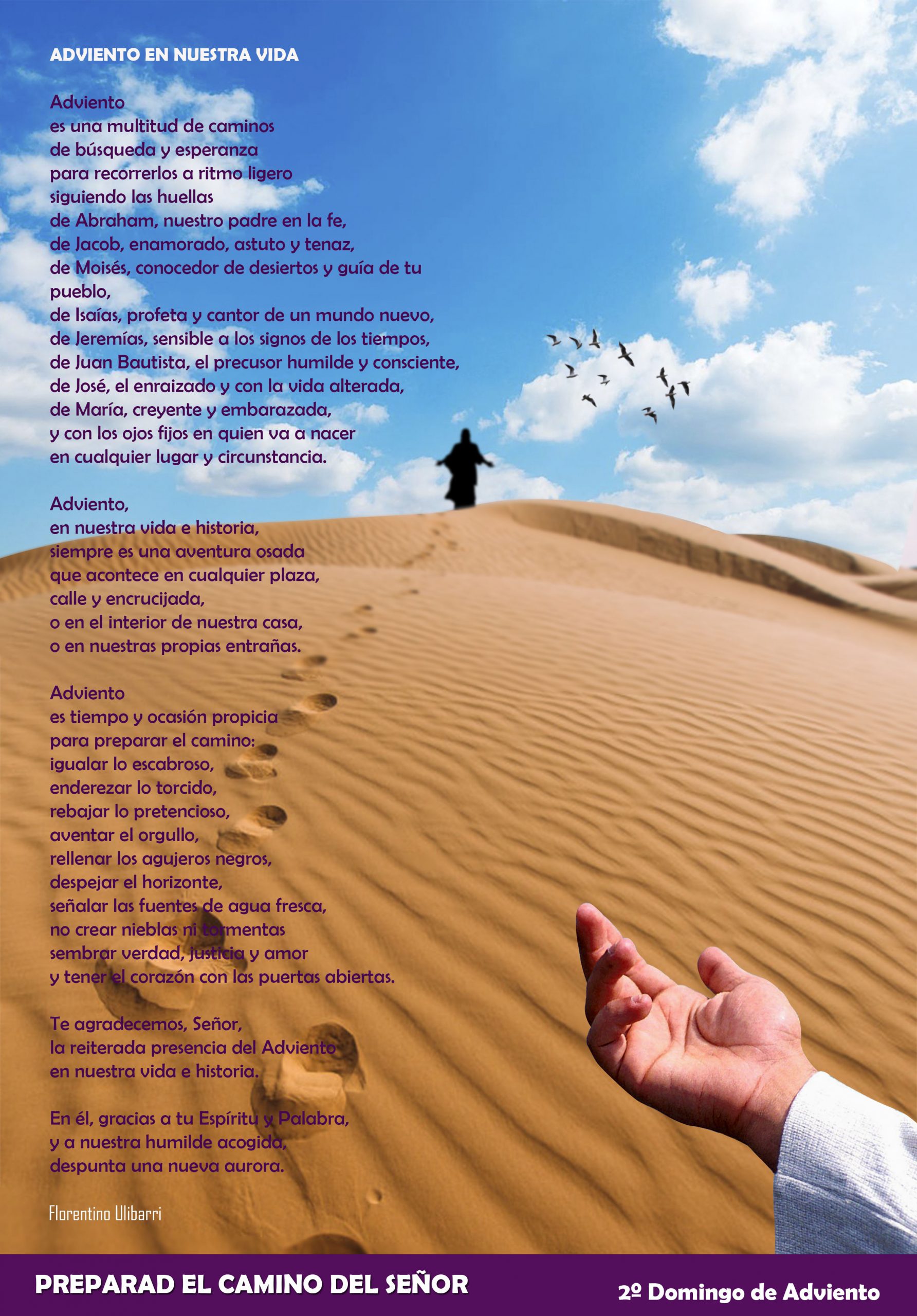 Marcos nos recuerda el grito del profeta en medio del desierto: «Preparadle el camino al Señor, allanad sus senderos». ¿Dónde y cómo abrir caminos a Dios en nuestras vidas? No hemos de pensar en vías espléndidas y despejadas por donde llegue un Dios espectacular. El teólogo catalán J. M. Rovira nos ha recordado que Dios se acerca a nosotros buscando la rendija que el hombre mantiene abierta a lo verdadero, a lo bueno, a lo bello, a lo humano. Son esos resquicios de la vida a los que hemos de atender para abrir caminos a Dios.