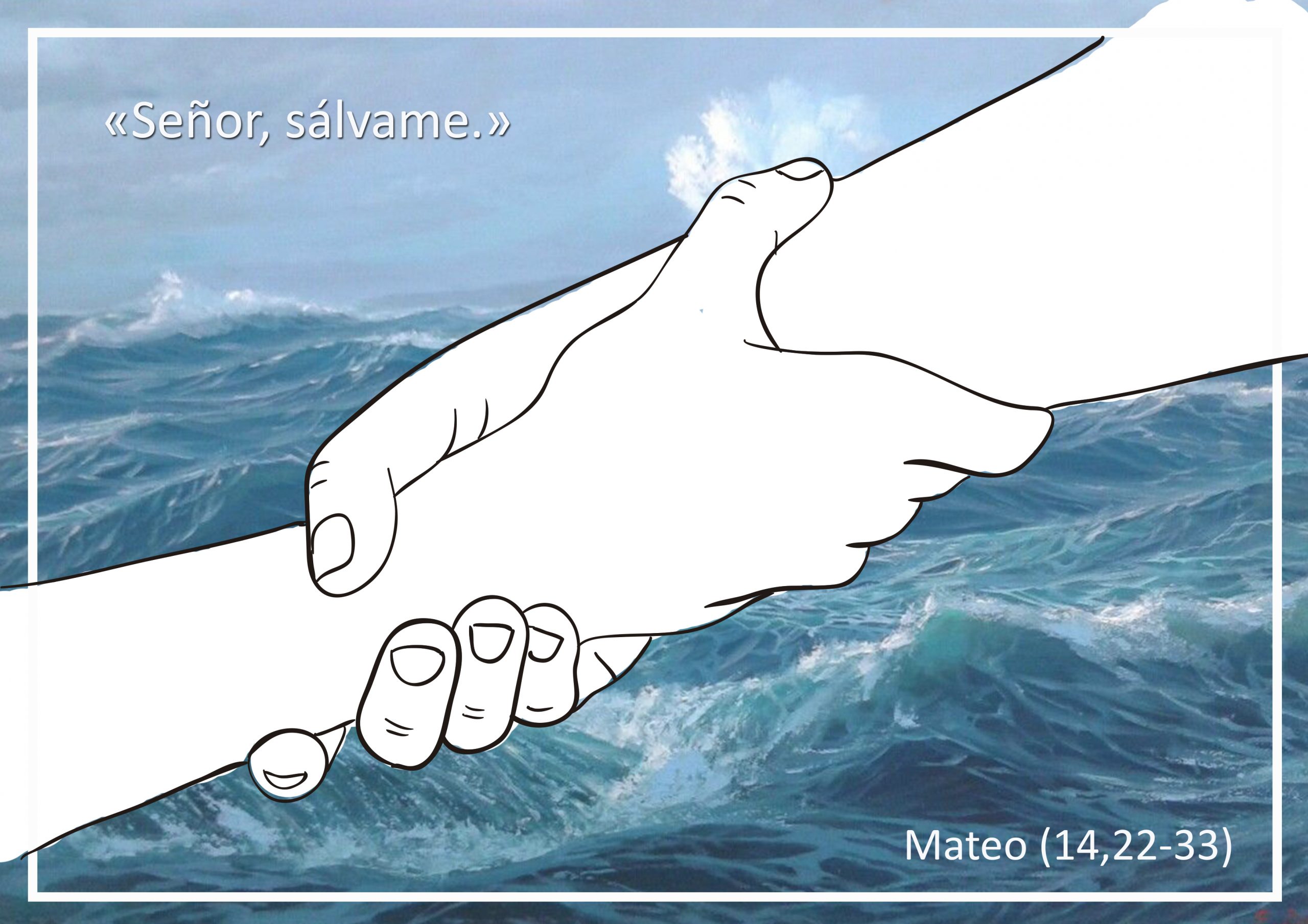 Pedro bajó de la barca y echó a andar sobre el agua, acercándose a Jesús; pero, al sentir la fuerza del viento, le entró miedo, empezó a hundirse y gritó: «Señor, sálvame.»